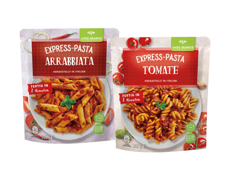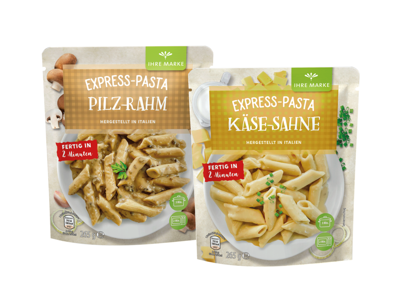 Těstoviny uvařené al dente v chutné omáčce - nové těstoviny Express Pasta od Hügli přinášejí italskou klasiku na každý talíř za pouhé 2 minuty. Pokrmy jsou nejen rychlé na přípravu, ale také neobsahují žádné umělé konzervační látky, barviva ani dochucovadla a mají dlouhou trvanlivost.